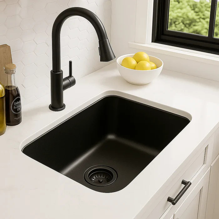 Matte black finish provides a striking, coordinated look when paired with black stainless steel or granite composite sinks