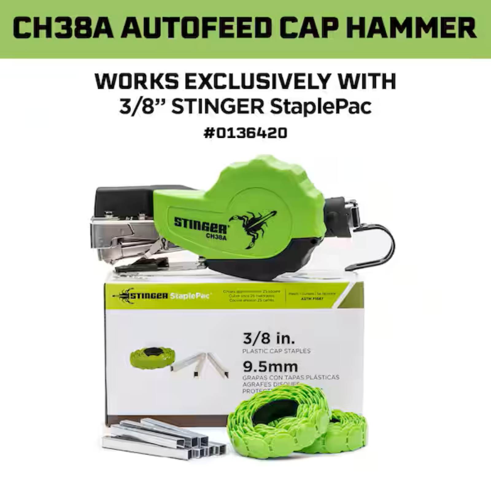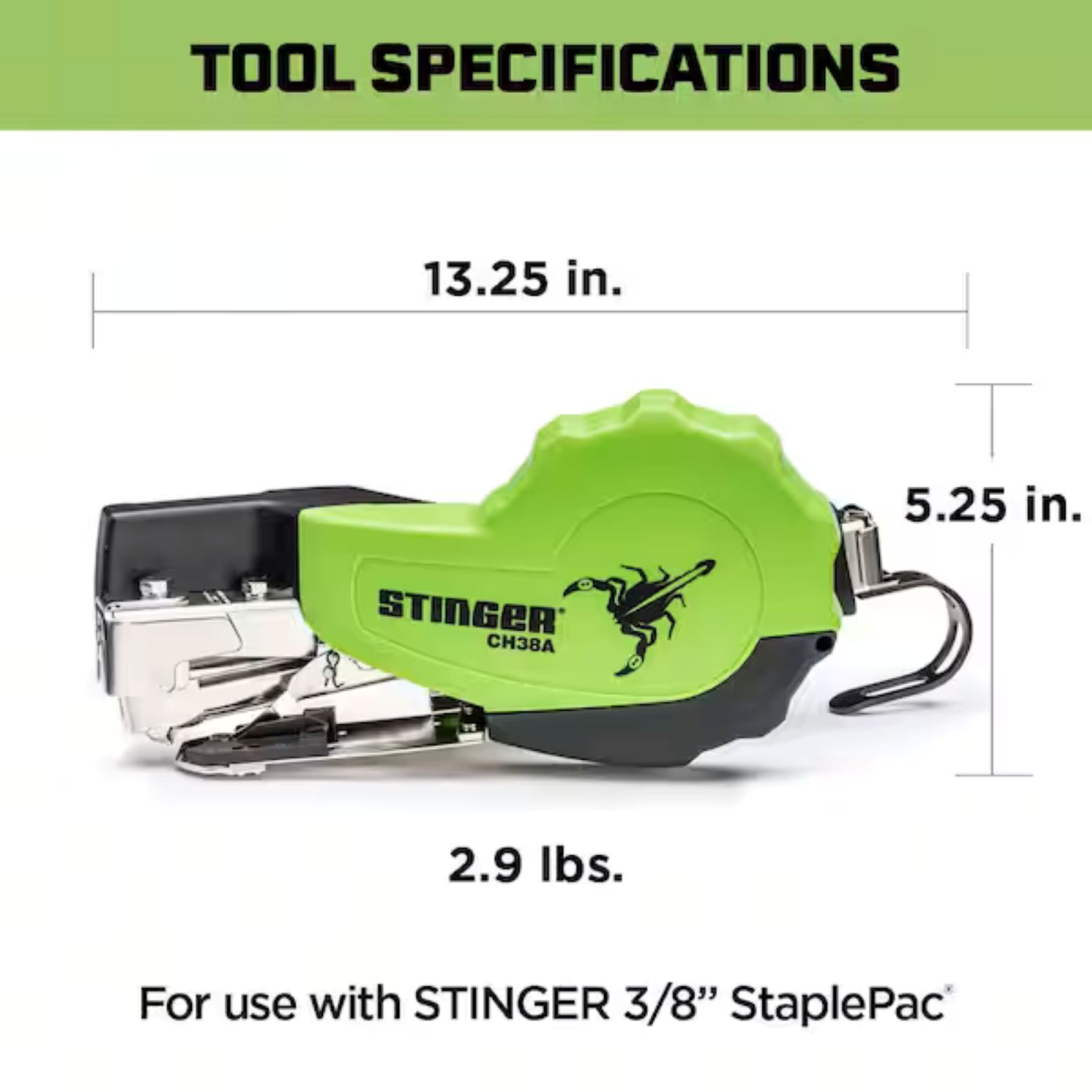 Compatible only with Stinger StaplePac (caps and staples sold separately)