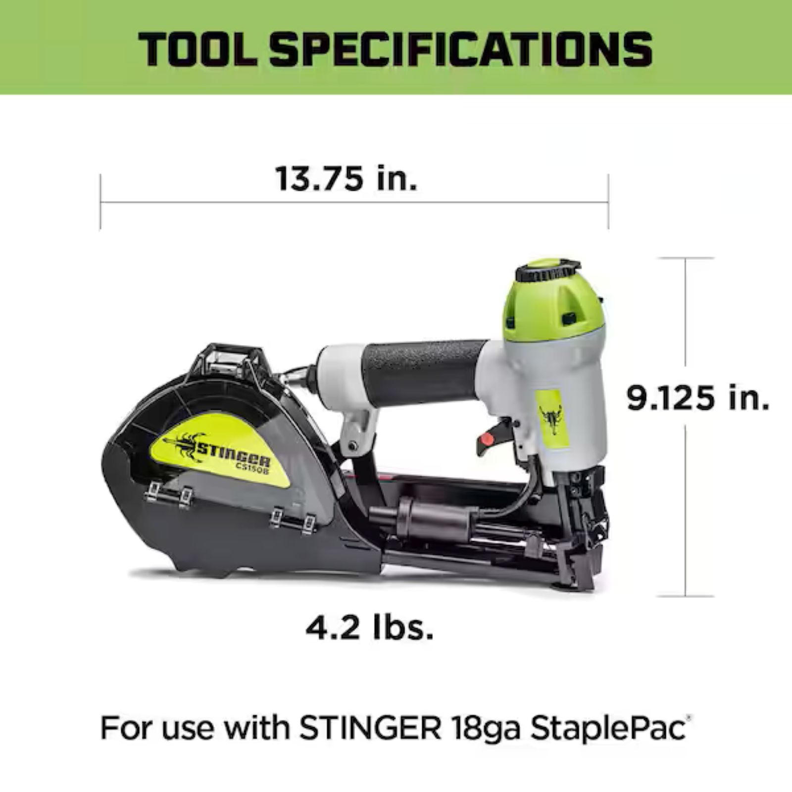 Shoots 5/8 in., 7/8 in., 1-1/4 in., or 1-1/2 in. staples with 1 in. caps