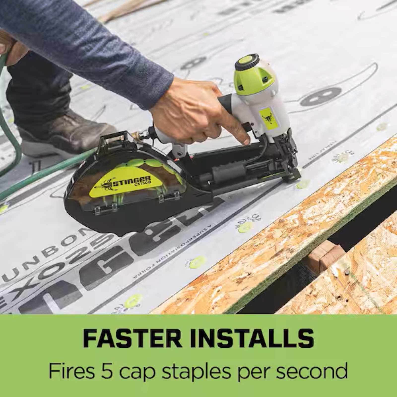 Delivers both cap and staple in a single drive for faster installation