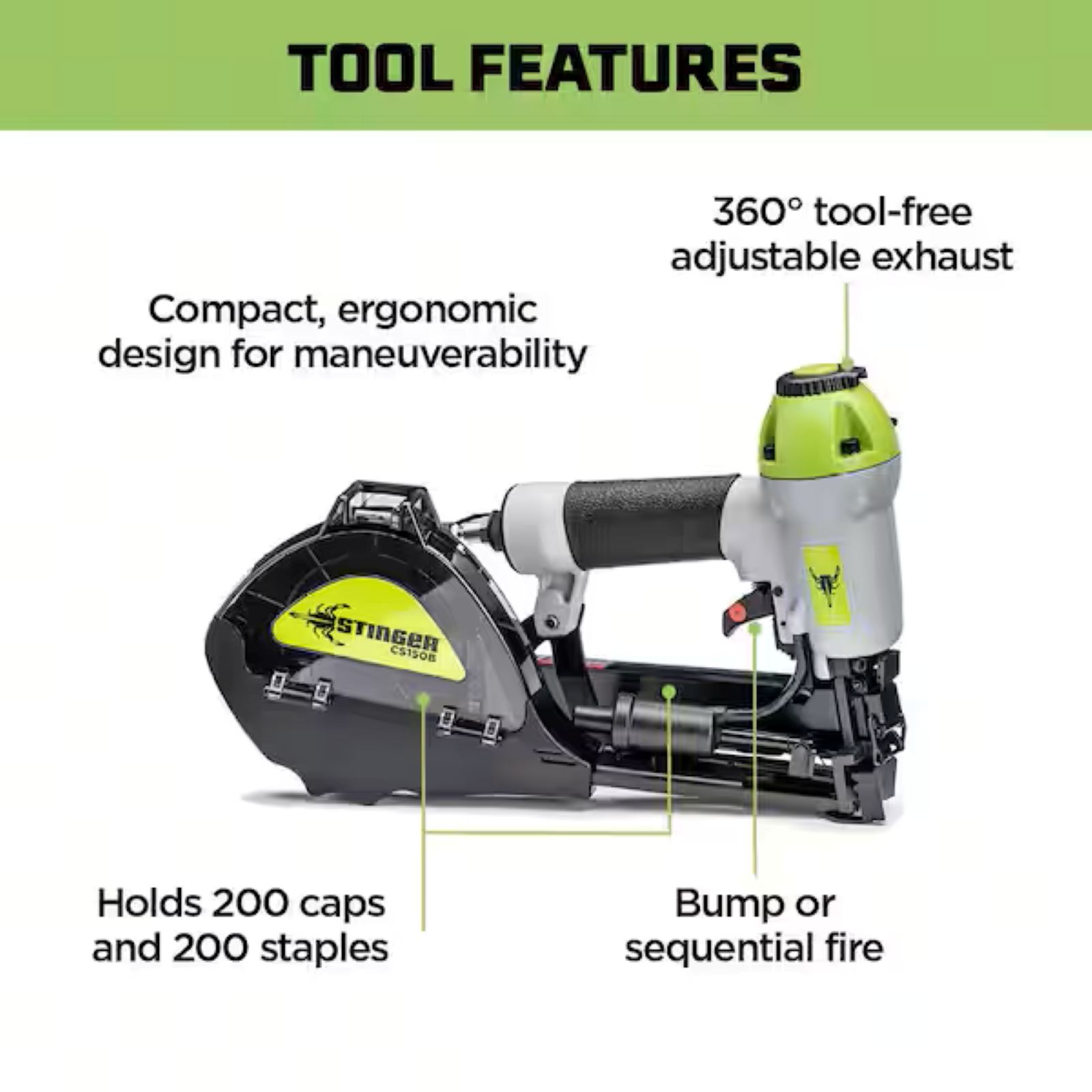 Shoots up to 5 cap staples per second for efficient fastening